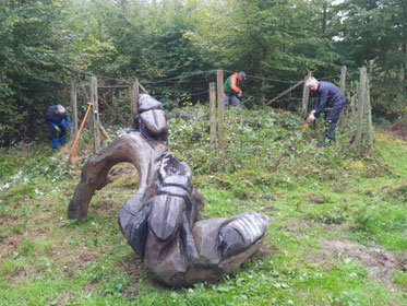 Wir haben Ende September mal wieder die Hirschkäferbrutstätte im Himbacher Wald bei Rommelhausen gepflegt. Die Brombeerhecke musste zurückgeschnitten werden, damit die Sonne auf das Holz scheinen kann, denn nur so fühlen sich die Hirschkäfer wohl.